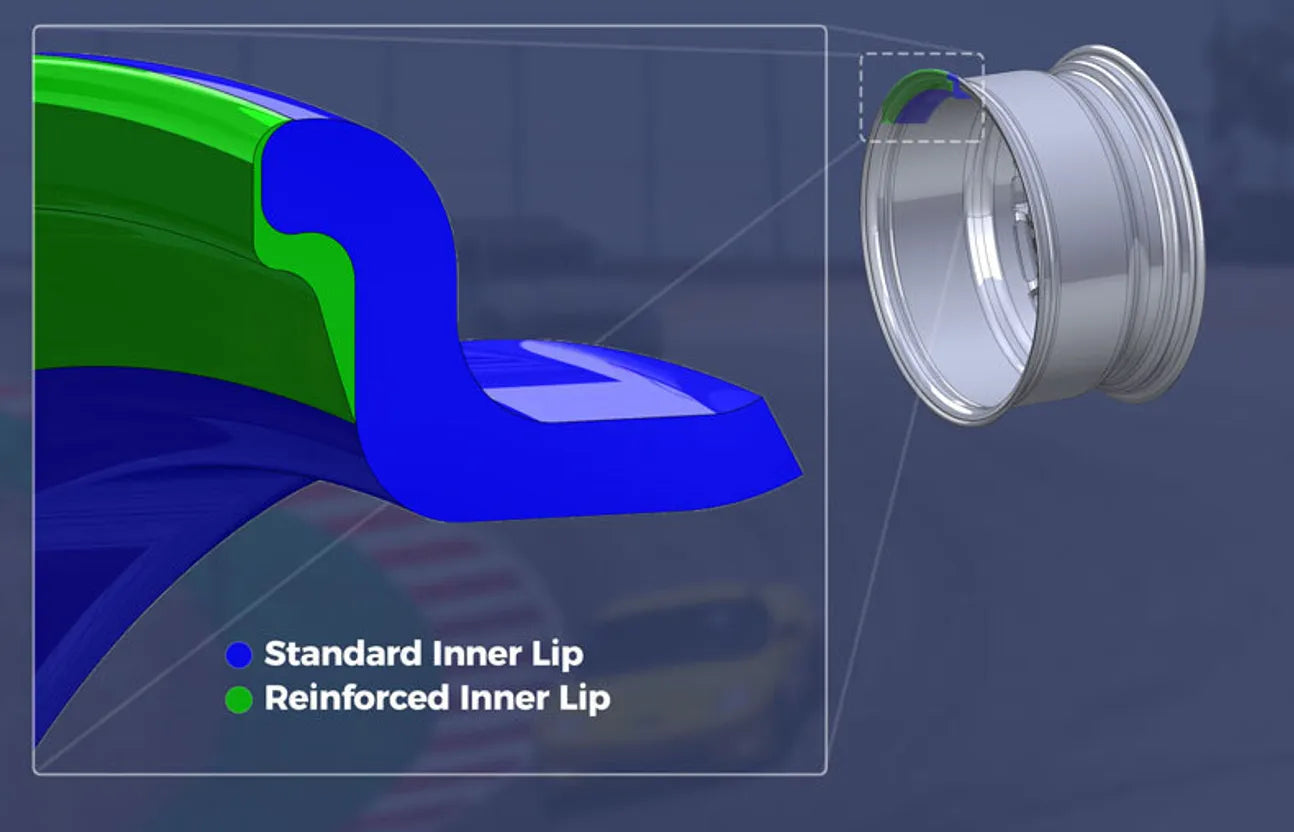 インナーリップは、支持するスポークがないため、ホイールの中で最も脆弱な部分です。当社のフローフォーミングEvolution Lineは、この脆弱な部分に素材を追加し、トラックの縁石、道路の穴、その他道路で遭遇するあらゆる衝撃から保護するための追加の層としています。